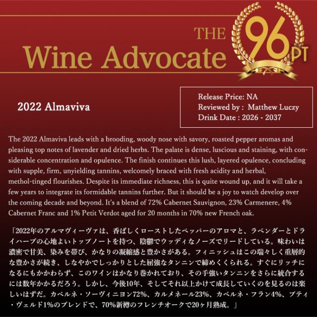 アルマヴィーヴァ 2022 バロン フィリップ ド ロートシルト(ムートン ロートシルト)&コンチャ イ トロ元詰 ジェームス サックリング99点