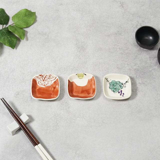 角豆皿 6.5cm 手描き 小皿 豆皿 角皿 角小皿 醤油皿 薬味皿 珍味皿 フルーツ皿 菓子皿 小さい皿 プレート お皿 皿 食器 和食器 かわいい 手書き カフェ食器 和カフェ