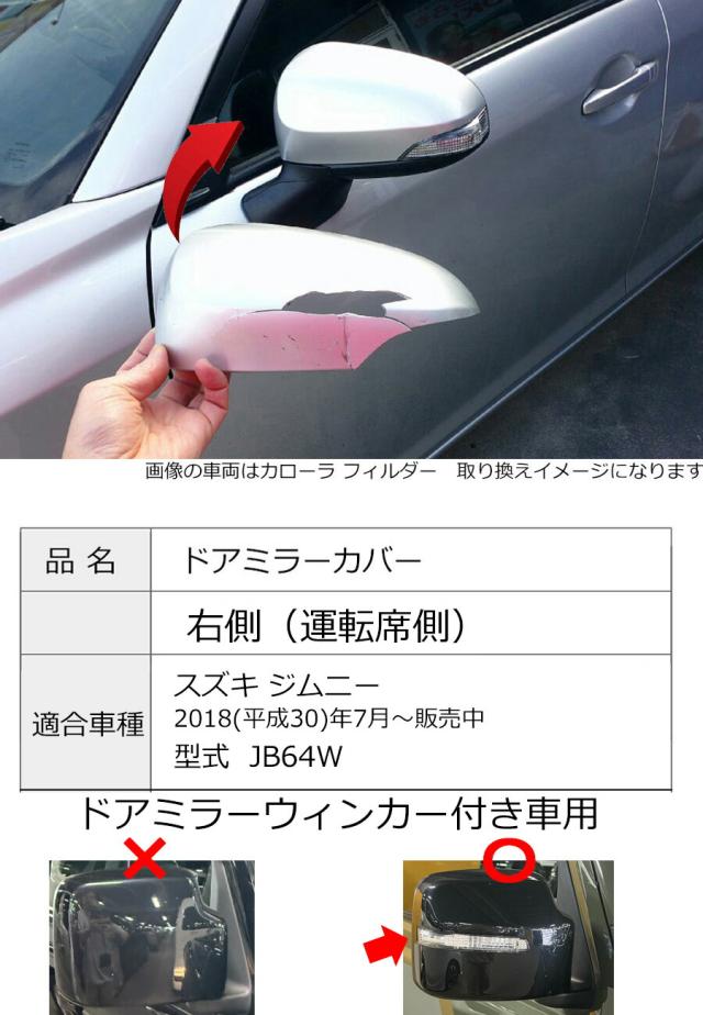 ドアミラーカバー右 スズキ ジムニー JB64W ドアミラーウインカー付き車 右側(運転席側)カラーをお選びください 傷・割れ・はげた時にDIYで交換にチャレンジ SJ6R0
