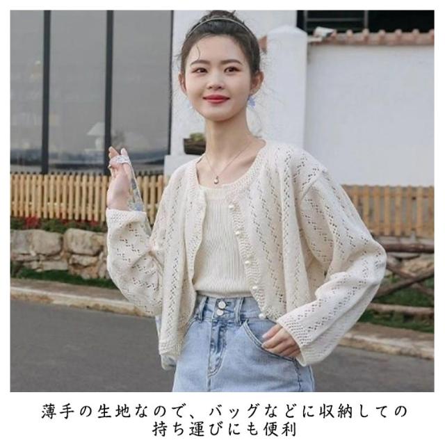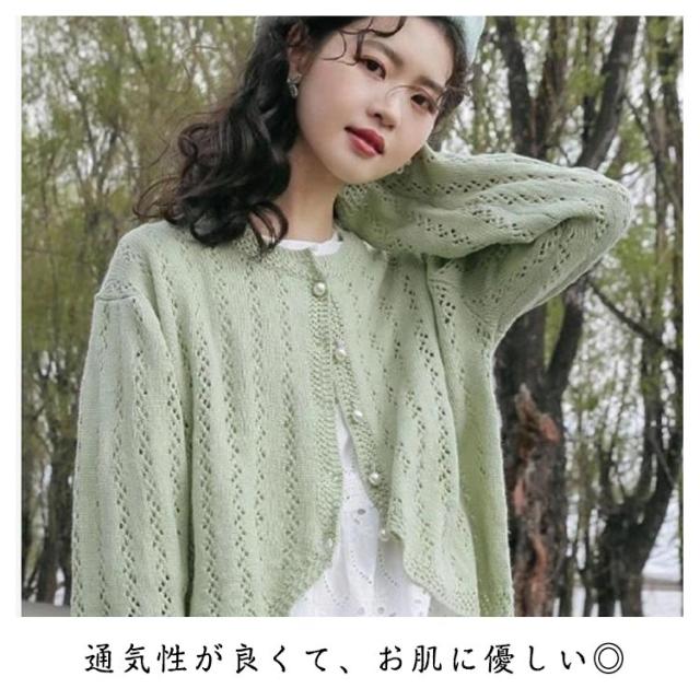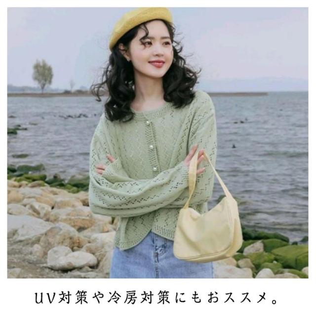 カーディガン レディース 春 夏 薄手 サマーニット 透かし編み 丸首 ボレロ 長袖 羽織り UVカット 冷房対策 UV対策 きれいめ 懇談会 カーデ トップス ニットカーディガン 透け ニット 春夏 薄手 ふんわり 結婚式 発表会 送料無料