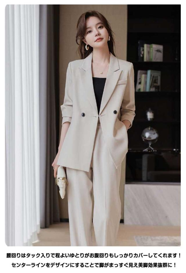 | 360度キレイなシルエットで着痩せ&美脚効果も抜群! 程よいトレンド感のあるダブルブレストジャケットに、なワイドパンツのセットアップ。 腰回りはタック入りで程よいゆとりがお腹回りもしっかりカバーしてくれます!センターラインをデザインにすることで脚がまっすぐ見え美脚効果抜群に! 通勤やお仕事服として、フォーマルな装いとして、単品使いでのカジュアルな着こなしなどもOK! カッチリとしたきちんと感と柔らかい。女性らしさを持ち合わせ、卒業式(卒園式)や入学式(入園式)、結婚式などのお呼ばれにはもちろん!オフィスカジュアルや就活にも活躍間違い無しの1着です。 | |