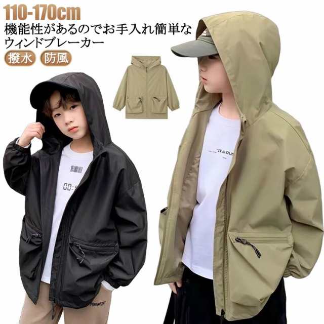 ジャケット フード付き ブルゾン コート マウンテンパーカー 中学生 子供服 ウインドブレーカー ジュニア 撥水 防風 マウンテンパーカー ゆったり アウター 男の子 小学生 ジャンパー キャンプ 修学旅行 登山 キッズ カジュアル 春 秋 110 120 130 140 150 160