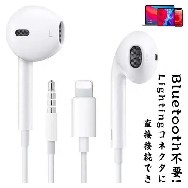 直接接続! iPhone アップル イヤホン 有線 Lightning Apple 有線イヤホン 純正 音量調節 マイク付き リモコン付き iPhone 12mini 12 12Pro 11P 11Pro 11ProMAX 7 7Plus 8 8Plus SE X XR XS MAX iPad iPod Bluetooth不要 送料無料
