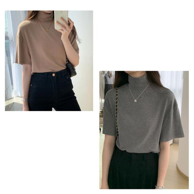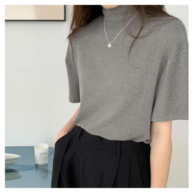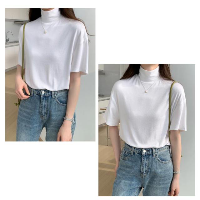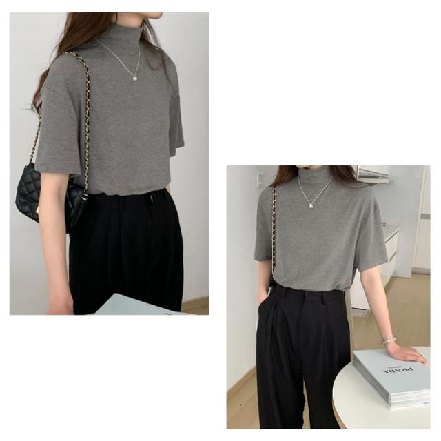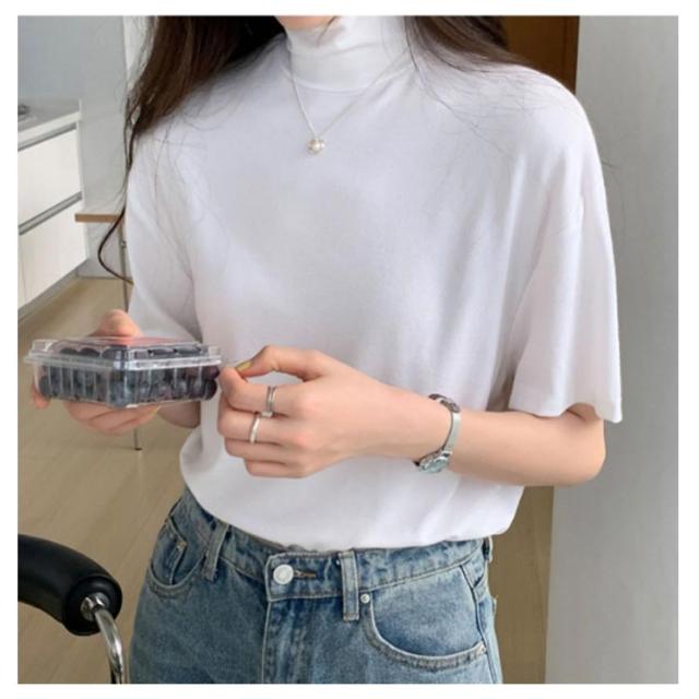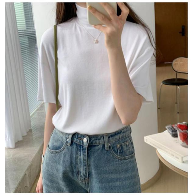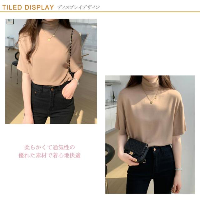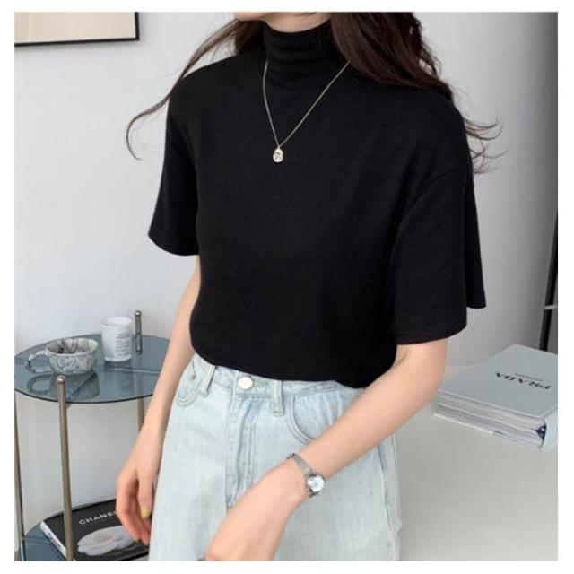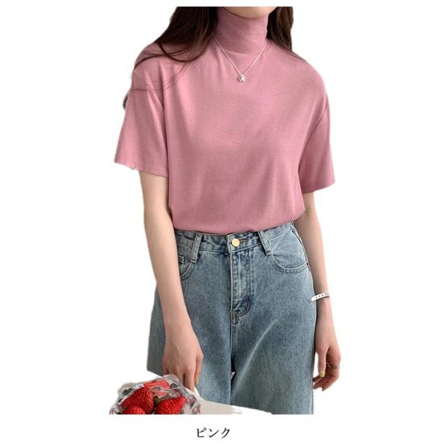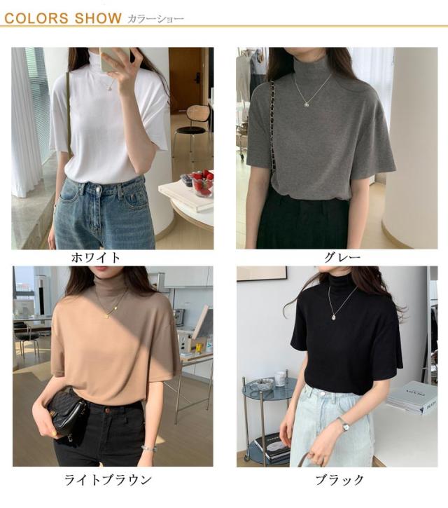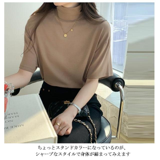 ハイネック 半袖 tシャツ カットソー レディース トップス 半袖tシャツ 半袖シャツ タートルネック 春 夏 秋 Tシャツ ゴルフ 薄手 フィット 無地 大きいサイズ おしゃれ シンプル 春夏 m l 白 黒 韓国 20代 30代 40代 50代