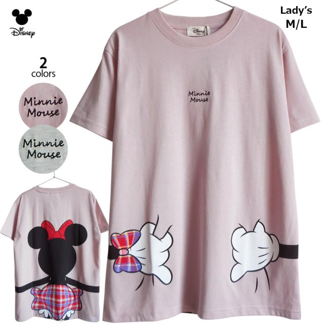 送料無料 ミニーマウス Tシャツ 抱きしめ 抱きつき ハグ hug ミニーハンド チェック バックハグ タータンチェックスカート リボン ディズニー disney 半袖 レディース ペアルック 水色 グレー 双子コーデ かわいい ゆったり 大人 TDL 春夏 ぽっちゃり