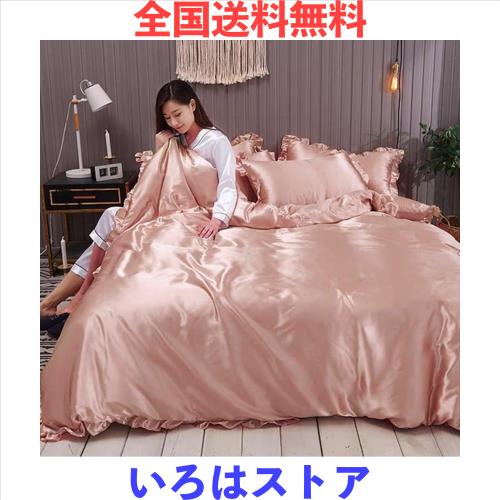 ◆商品名:布団カバー セット シルクみたい艶 ツルツル 冷感 フリル 春夏 シングル セミダブル シルクレーヨン素材 ずれ防止 肌に優しい ボックスシ
