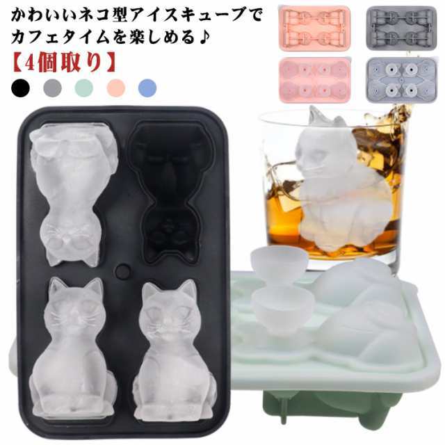 漏れ防止 4個取り ネコ型 製氷 取出し簡単 アイス 製氷皿 蓋付き アイストレー製氷皿 製氷皿 氷 アイスコーヒー 製氷グッズ 高耐久性 シリコン かわいい ジュース 柔らかい ビール 梅酒 ウィスキー 自宅用 職場用 クラブ用 レストラン用