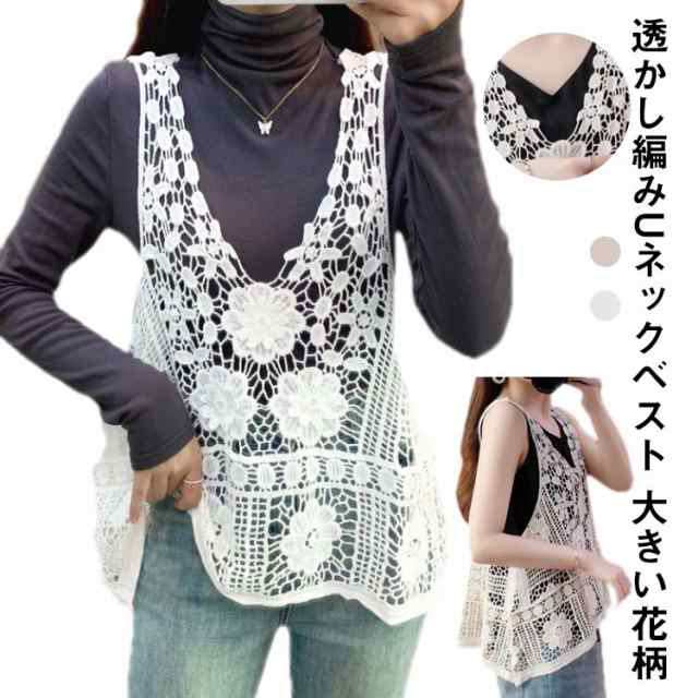 トップス ベスト 春 花柄 レイヤード 涼やか レディース おしゃれ カーディガン 夏 かぎ編み クロシェ編み ニットベスト 透かし編み ノースリーブ サマーニット ベスト きれいめ 透け 大人