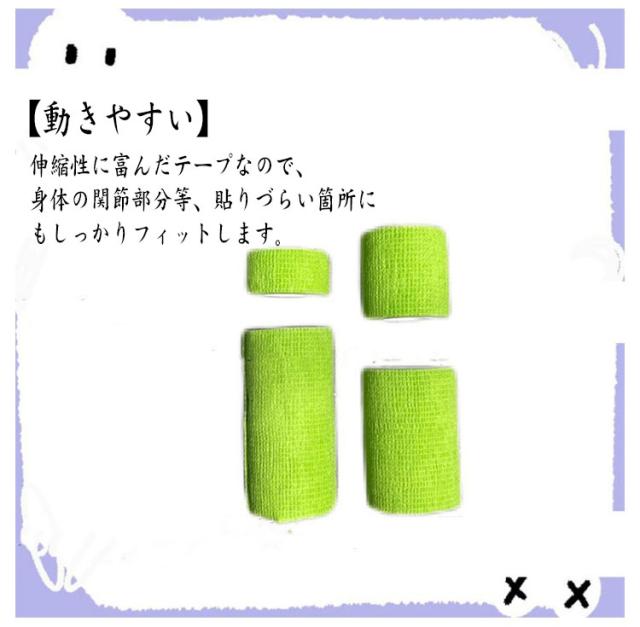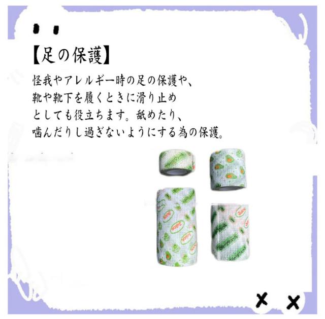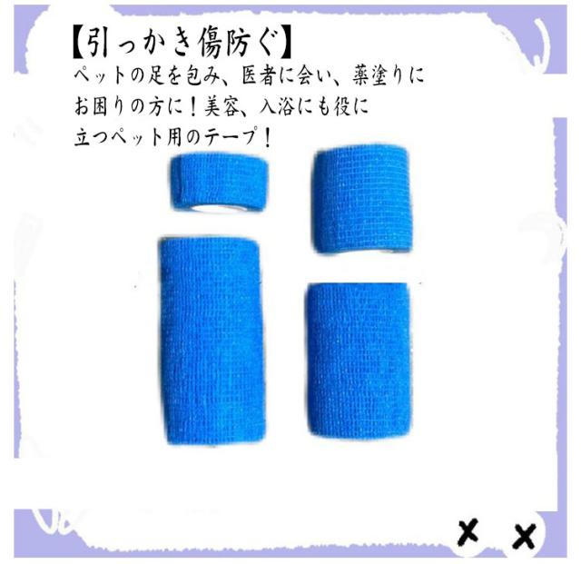 | 【巻くだけ伸縮包帯】ガーゼの固定や傷口なめ防止などの皮膚の保護に。 【簡単に巻ける】テープ同士がくっつく自着タイプので、何度もくっつくため、テーピングの巻き直しも簡単です。 【動きやすい】伸縮性に富んだテープなので、身体の関節部分等、貼りづらい箇所にもしっかりフィットします。 【通気性&伸縮性】テーピングに使用できる、薄くて通気性に優れた、活動に影響を与えない、調節できる。貼付部のムレを軽減、汗、水分も蒸発しやすい、不快感の少なく、より衛生と健康です。 【引っかき傷防ぐ】ペットの足を包み、医者に会い、薬塗りにお困りの方に!美容、入浴にも役に立つペット用のテープ! 【足の保護】怪我やアレルギー時の足の保護や、靴や靴下を履くときに滑り止めとしても役立ちます。舐めたり、噛んだりし過ぎないようにする為の保護。 | |