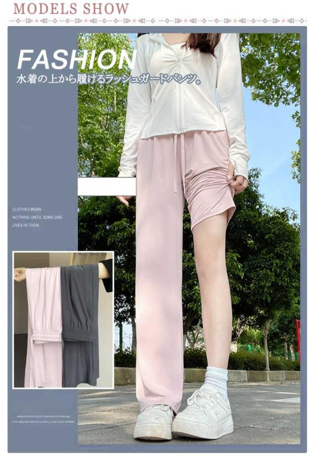 パンツ UVカット ラッシュガード 冷感 体形カバー レディース ワイドパンツ 紫外線対策 ズボン ひんやり ロングパンツ ラッシュパンツ UPF50+ 水着 長ズボン ラッシュボトム UVカット 水陸両用 UVカット 日焼け対策 冷感 ゆったり 薄手 ストレッチ