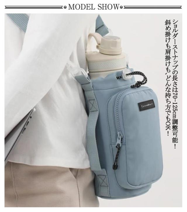 | 直径約10cm!大きめの水筒・ボトルにも対応可能! 水や汚れがついてもサッと拭くだけでお手入れ簡単!砂場やプールなどへのお出掛けにも最適です。 ストッパー付きの巾着タイプしっかり閉じられて、水筒が飛び出してしまうのを防ぎます。 ショルダーベルトを外せば手持ちもできます。通勤・通学・お散歩・キャンプなど様々な場面で大活躍! ショルダーストナップの長さは70-125cm調整可能!斜め掛けも肩掛けも、どんな持ち方でもOK! | |