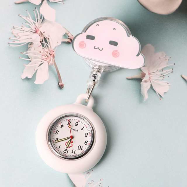 ナースウォッチ 懐中時計 クリップ式 シリコン製 見やすい ポケットウォッチ 看護師用 男女兼用 誕生日 シンプル 伸び縮み可能 可愛い スマイリー クリップ付き 送料無料