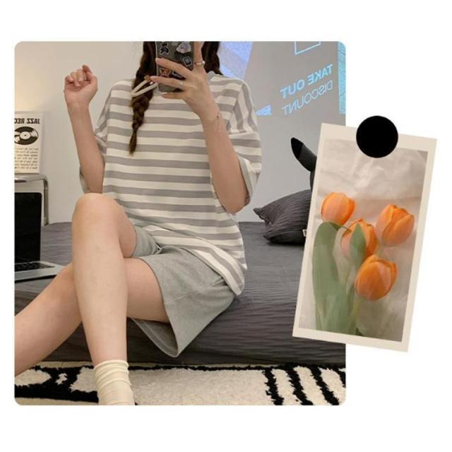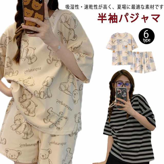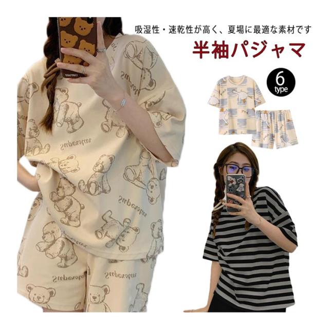 夏用パジャマ かわいい ルームウェア 夏パジャマ 半袖 上下セット パジャマ レディース ボーター 襟なし 半袖パジャマ 可愛いパジャマ 上下セット 大人用 春 部屋着 パジャマ 大人用 パジャマ 丸首 大きいサイズ 入院 産後 ゆったり 部屋着 母の日