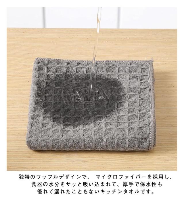 | 8枚入り 肌触りの良いワッフル調のタオルです。 独特のワッフルデザインで、 マイクロファイバーを採用し、 食器の水分をサッと吸い込まれて、厚手で保水性も優れて漏れたこともないキッチンタオルです。 また、交差織り技術のおかげで、通風性が良い室内で干すと翌朝に素早く乾く。 台拭き或いは食器拭きとしては最適なキッチンクロスです。 調理台、レンジやテーブルなどの油汚れ取りの台拭きや木製食器の水拭きに非常に役に立てる。 しかも、レストラン、コンビニ、屋台、飲食店のような食事を作るところや、事務室、図書館、博物館、病院などの毎日お掃除が必要な場所にとしても不可欠なふきん。 | |