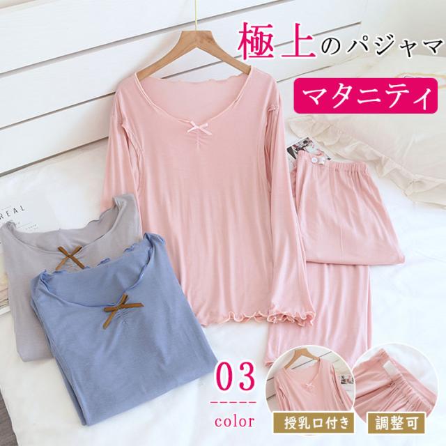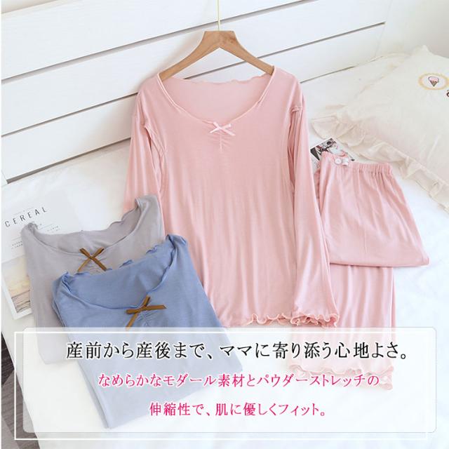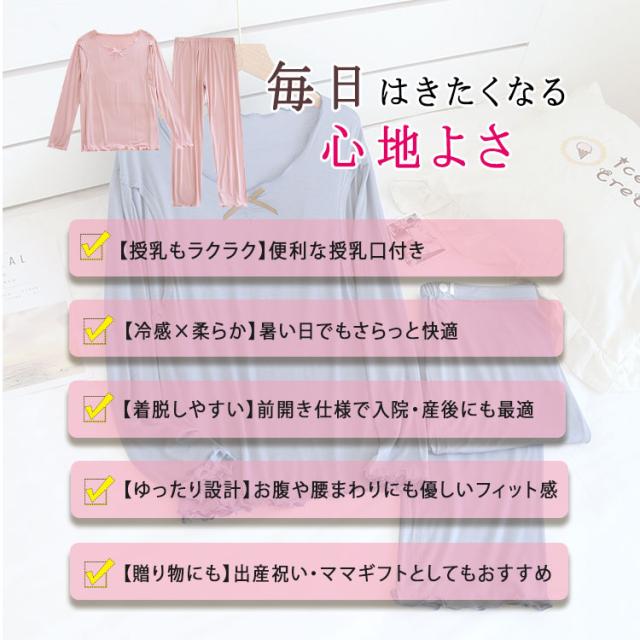 接触冷感 モダール マタニティ パジャマ 授乳パジャマ 長袖 上下セット 授乳口付き 吸汗速乾 産前産後対応 ゆったり 前開き ルームウェア 春 夏 秋 出産準備 ギフト