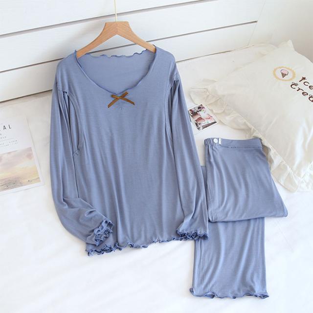 商品名 | ナイトウェア パウダーストレッチ 接触冷感 モダール マタニティ パジャマ 授乳パジャマ 長袖 上下セット 授乳口付き 吸汗速乾 産前産後対応 ゆったり 前開き ルームウェア 春 夏 秋 出産準備 ギフト |