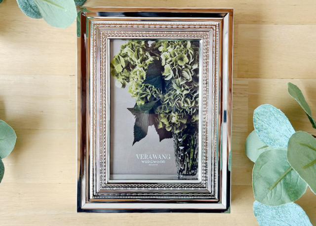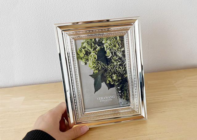 美しい光沢と耐久性の高い銀メッキ。 フレームは縦置き、横置き、どちらでもお使いいただけます。