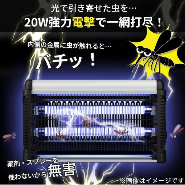 送料無料 20W 電撃殺虫器 虫捕り器 蚊取り器 PSEマーク取得済 コンセント式 虫よけ 蚊 コバエ ハエ 電気 UV光源誘引式虫捕