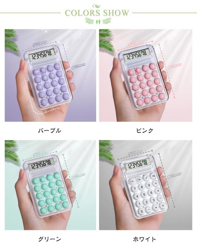ミニ おしゃれ 電卓 送料無料 卓上 カラフル 可愛い ラウンドボタン 送料無料 電卓 かわいい 丸ボタン コンパクト 外出 持ち運び便利 オフィス用 事務用 計算機 業務実務 カラフル電卓 ミニ卓上サイズ