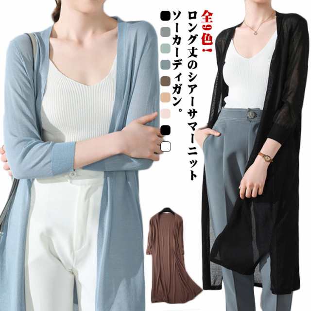 ロング丈 カーディガン サマーカーディガン 薄手 冷感 夏 冷房対策 アイスシルク 羽織り レディース ニットソーカーディガン 涼しい 体型カバー 日焼け止めカーディガン ゆったり オフィス