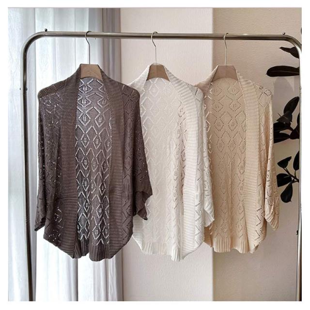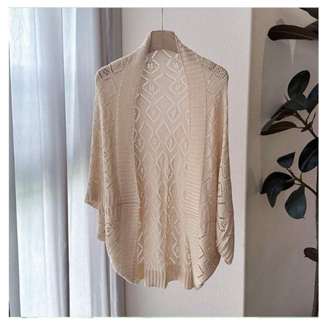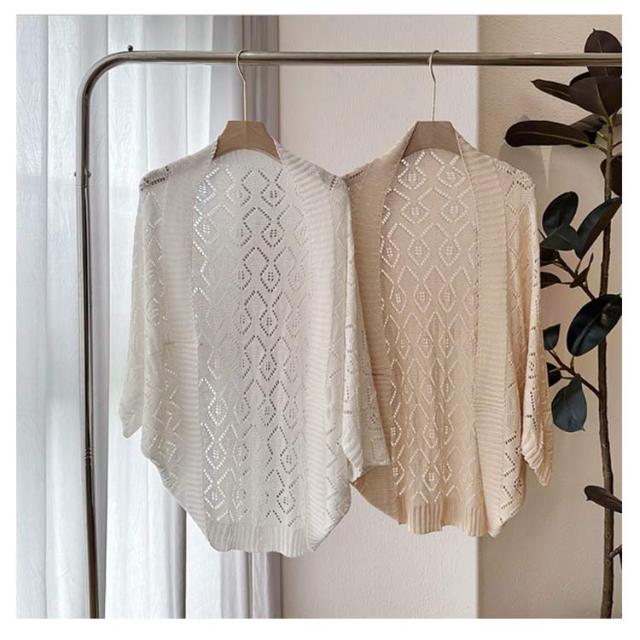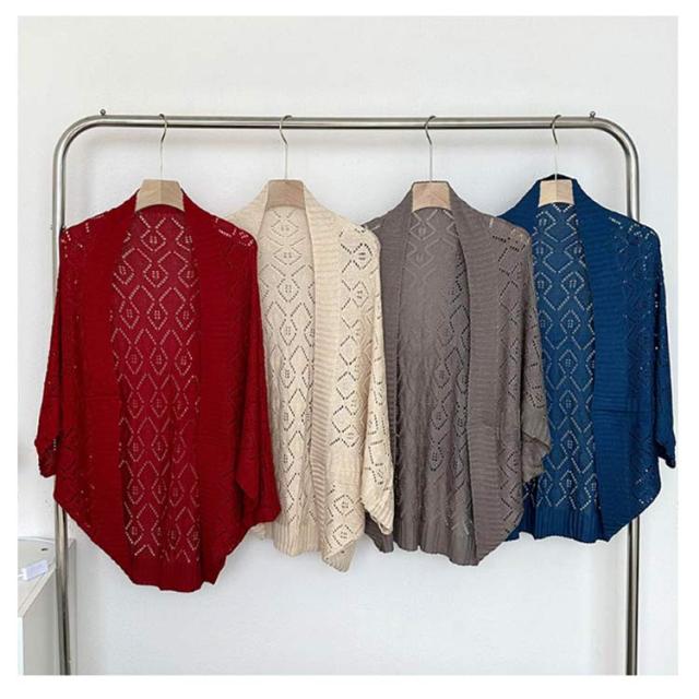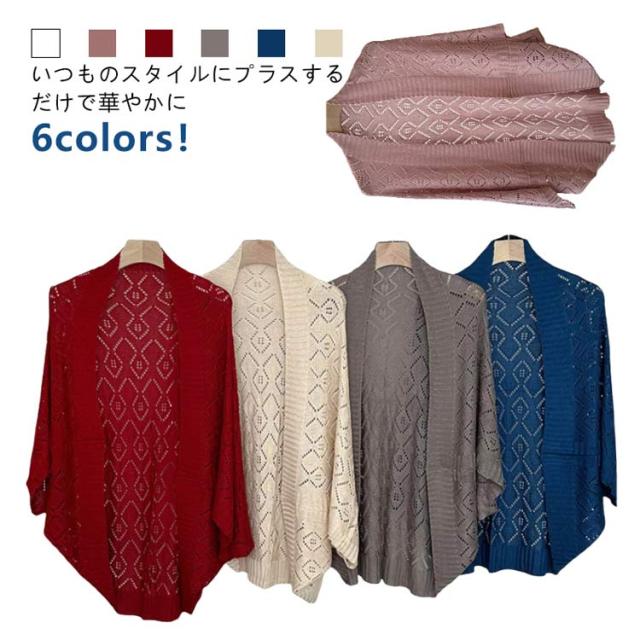 シアー ニットカーディガン Vネック レディース 羽織り 薄手ニット 七分袖 無地 アウター 秋 バルーンスリーブ 春服 ゆったり春夏 ニットカーディガン ニット ドルマンリーブ 送料無料 ホワイト ピンク レッド ブラック ブルー