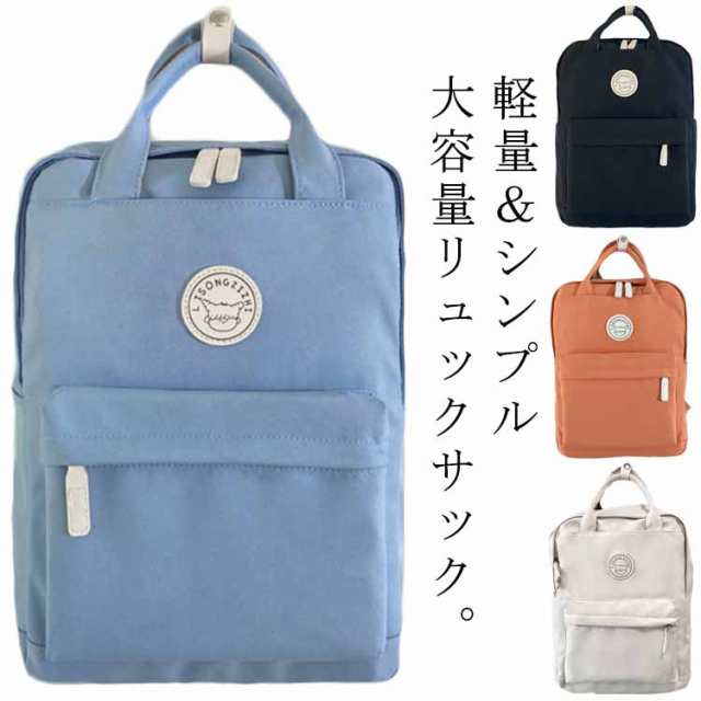 リュックサック ポケットたくさん 男女兼用 ナイロン ボックス型 女性 大容量 撥水 背面 リュック 男子 18L かわいい ファスナー ママリュック 中学生 ロゴ 高校生 女子 a4 レディース ユニセックス メンズ 大人 大学生 マザーズバッグ 旅行 黒 多収納 スクエア