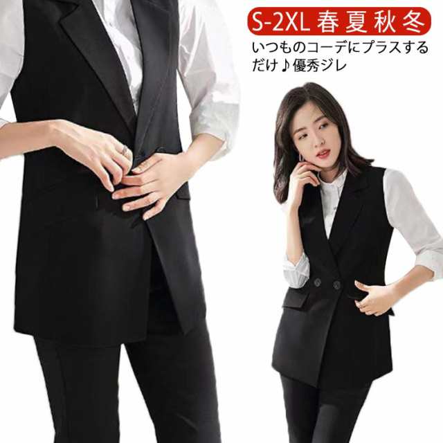無地 レディース トレンチベスト ノースリーブ ベスト 事務服 夏 秋 冬 ベスト トップス ミドル丈 ジレ ロングベスト ビジネス 春 春秋 ミドルジレ 大きいサイズ ゆったり 大人 OL 通勤 20代 30代 40代 50代 羽織り オフィス 重ね着 シンプル