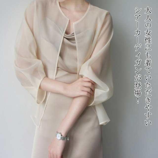 シースルー オーガンジー きれいめ カーディガン シースルー 冷房対策 シースルー ゆったり ライトアウター ベージュ ホワイト 羽織 トップス ノーカラー シアートップス 透け感 体型カバー カーディガン 体型カバー 通勤 夏