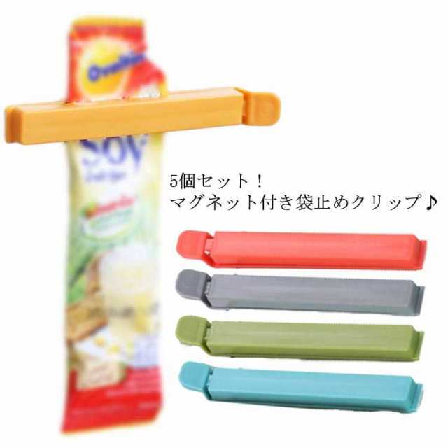 食材保存 磁石 袋止めクリップ 5個セット 軽食保存 送料無料 フードクリップ キッチン用 鮮度保ち 防湿 食品クリップ 冷蔵庫袋クリップ 袋密封 湿気対策 酸化防止 耐久性クリップ マグネット付き
