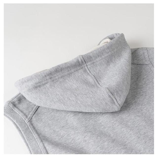 | フード付きのノースリーブのスウェットベスト。季節の変わり目に大活躍する! 肌に優しく、しなやかなさわり心地。 ニットやスウェット、ロンTなどのトップスを合わせてレイヤードスタイルに。 | |