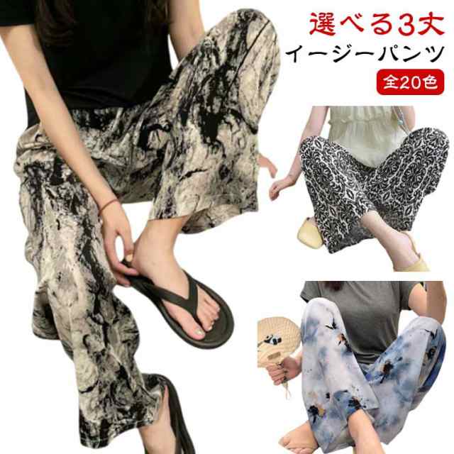 イージーパンツ 大きいサイズ 薄手 選べる3丈 選べる3丈 低身長 ルームパンツ 部屋着 レディース 高身長 ロングパンツ ワイドパンツ 涼しい ズボン 柄パンツ ウエストゴム レーヨン 楽ちん リラックスパンツ 夏