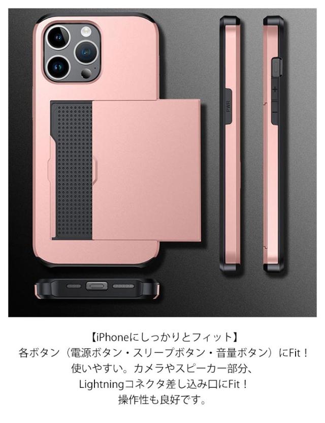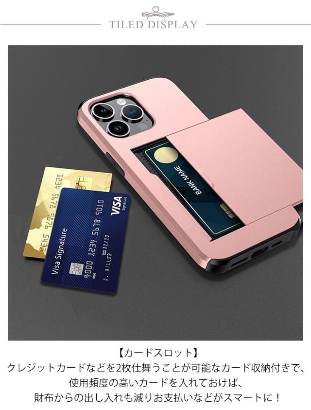 | iPhone カード収納ケース。スライド収納型スマホカバー 【2層構造で衝撃にも強い】外側の堅い素材[ハードPC]と内側の柔軟な素材(ソフトTPU)の2層ハイブリッド構造でiPhoneをしっかりとガードします。 【美しい外観】ハードPC素材は、美しくスタイリッシュな外観を演出。 【カードスロット】クレジットカードなどを2枚仕舞うことが可能なカード収納付きで、使用頻度の高いカードを入れておけば、財布からの出し入れも減りお支払いなどがスマートに! ※ご利用環境などによっては、各種交通系ICカードなどの読み取りができない場合がございます。 【iPhoneにしっかりとフィット】各ボタン(電源ボタン・スリープボタン・音量ボタン)にFit!使いやすい。カメラやスピーカー部分、Lightningコネクタ差し込み口にFit!操作性も良好です。 | |