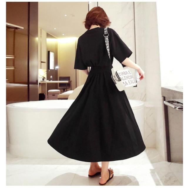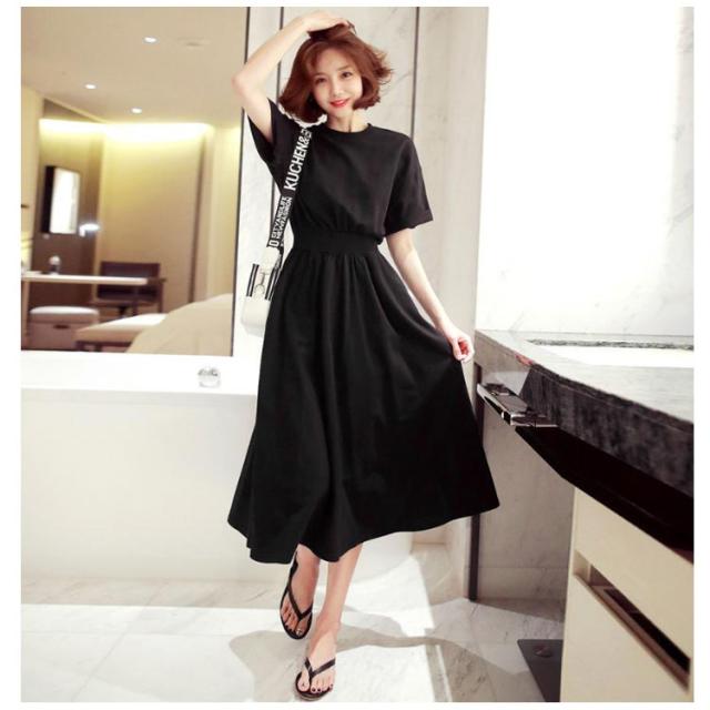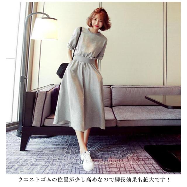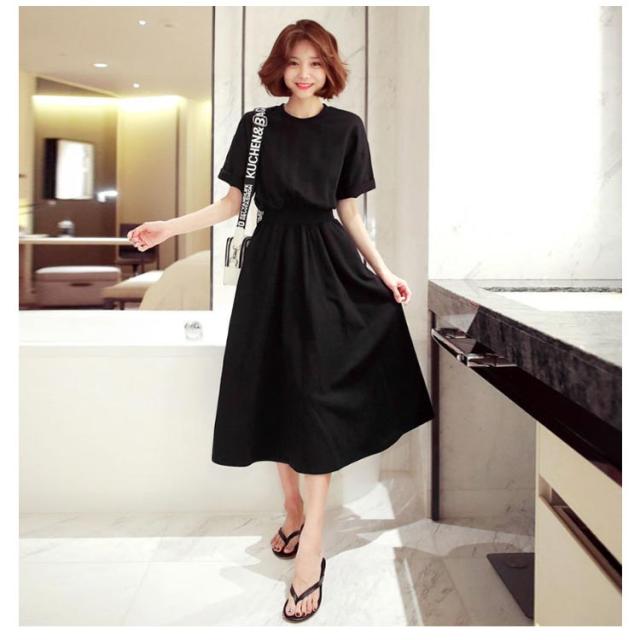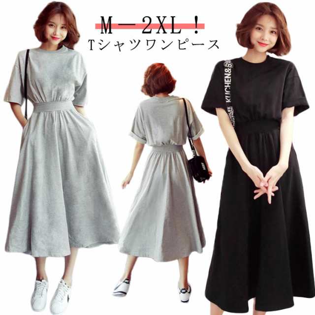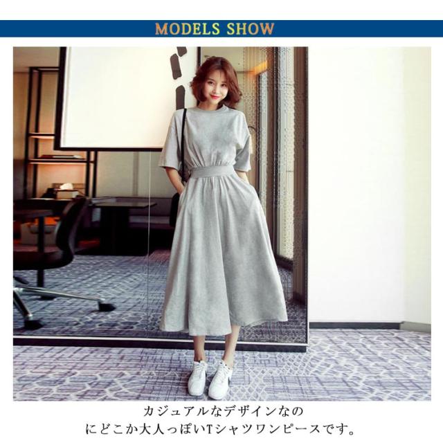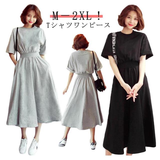 | M?2XL!カジュアルなデザインなのにどこか大人っぽいTシャツワンピースです。 様々なスタイルを楽しむことができ、着回し力抜群の1枚です。 ウエストゴムの位置が少し高めなので脚長効果も絶大です! | |