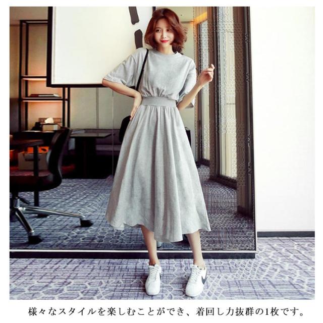 クルーネック ロングワンピース Tシャツ ワンピース 夏 ロング 春 ゆったり 大きいサイズ マキシワンピース レディース 半袖 ワンピース 韓国ファッション パーティー ドレス 着痩せ 綿 リゾートワンピース きれいめ 体型カバー 送料無料 オシャレ