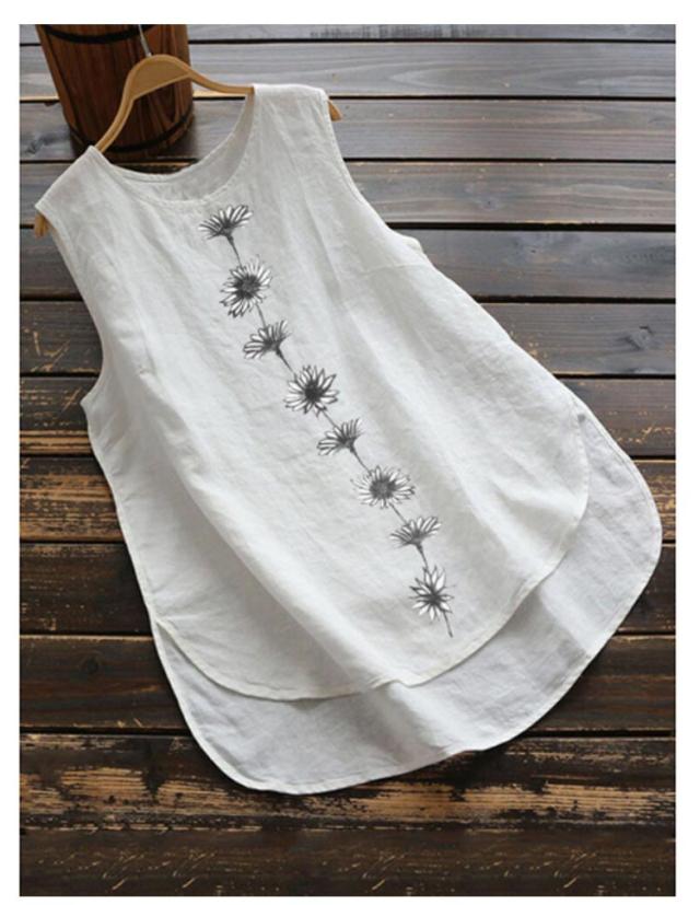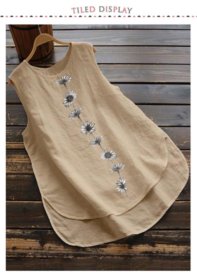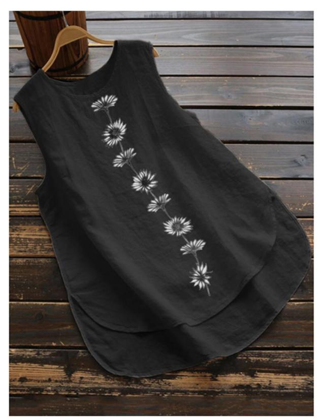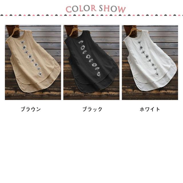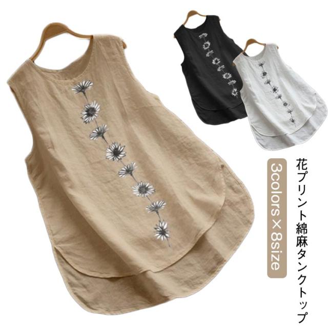 ロング トップス レディース 綿麻風 お洒落 ロング丈 綿 タンク おしゃれ ノースリーブ Tシャツ チュニック 花プリント Tシャツ タンクトップ 大きいサイズ タンクトップ 重ね着 レイヤード 着痩せ 無地 春 夏 部屋着 30代 40代 50代