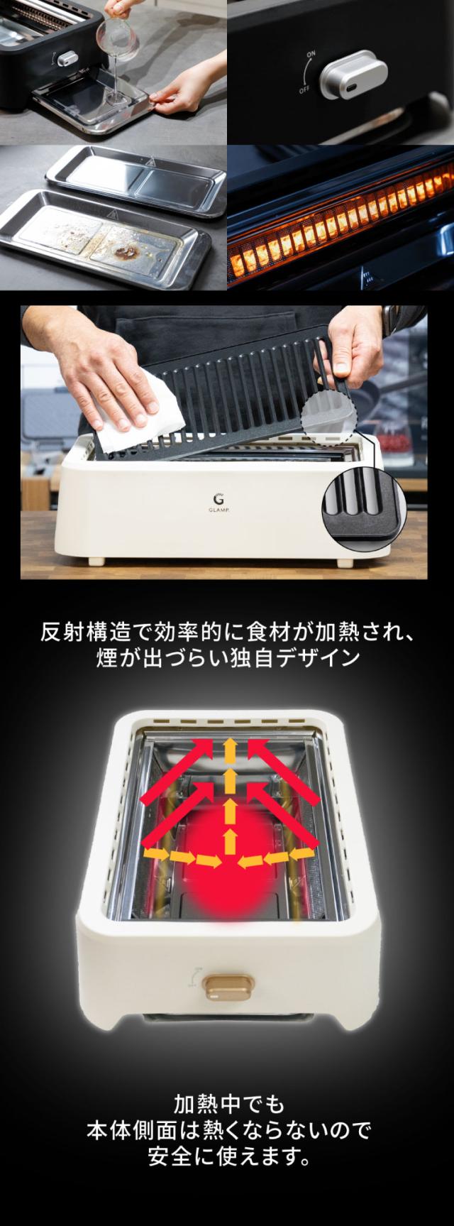 GLAMP 超少煙グリル 減煙 煙が出ない 焼肉 ホットプレート バーベキュー コンロ グランプ 遠赤外線 スモークレス 煙が少ない 電気 焼き鳥 おしゃれ コンパクト SG01【送料無料】