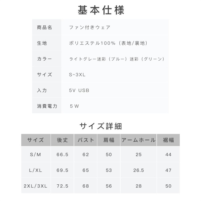 セット内容:空調服*1、ファン*2、ファンケーブル*1 (バッテリーは別売り!)