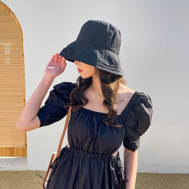 新作 ハットストラップ付きつば広シンプルバケットハット レディース メンズ ハット 帽子 バケットハット ブリムハット つば広 あご紐付き 大きめ 深め 日よけ UV 紫外線 日焼け対策 折りたたみ おしゃれ 春夏