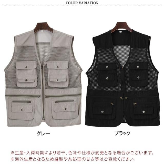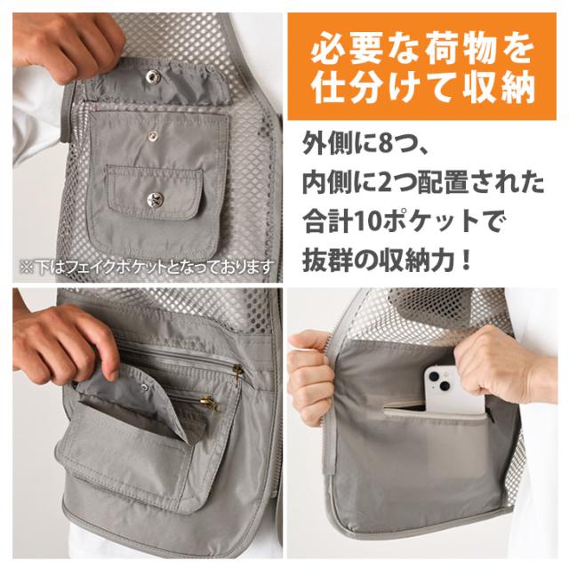新作 手ぶらでお出かけ◎選べる4サイズ多収納10ポケットメッシュベスト メンズ ベスト メッシュベスト フィッシングベスト トップス メッシュ 前開き 大きいサイズ ポケット 収納 アウトドア キャンプ 釣り 作業