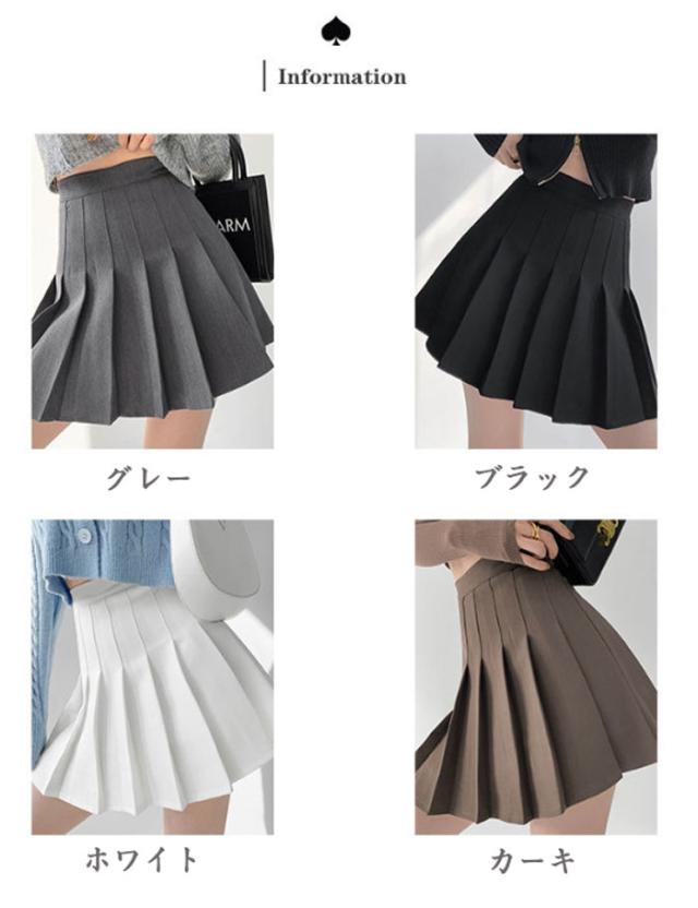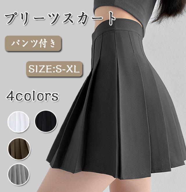 プリーツスカート ミニスカート インナ レディースファッション 特集 ブラック カーキ グレー ホワイト S M L XL