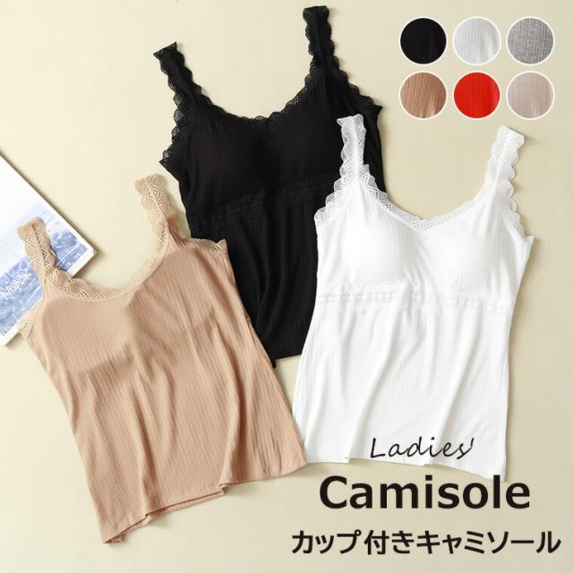締め付け感がないのにきちんとバストメイク♪ブラトップ パッド付き キャミソール レディース 女性 インナー 下着 肌着 Vネック カップ付き ブラキャミソール レース お洒落 かわいい お出 シンプル