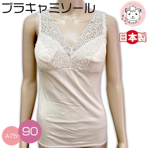 【アウトレット】ラン型 ブラキャミソール レディース スーピマ綿 フライス 綿混 ソフトカップ ブラトップ 日本製 A80 | 下着 肌着 ブラタンク ブラインナー