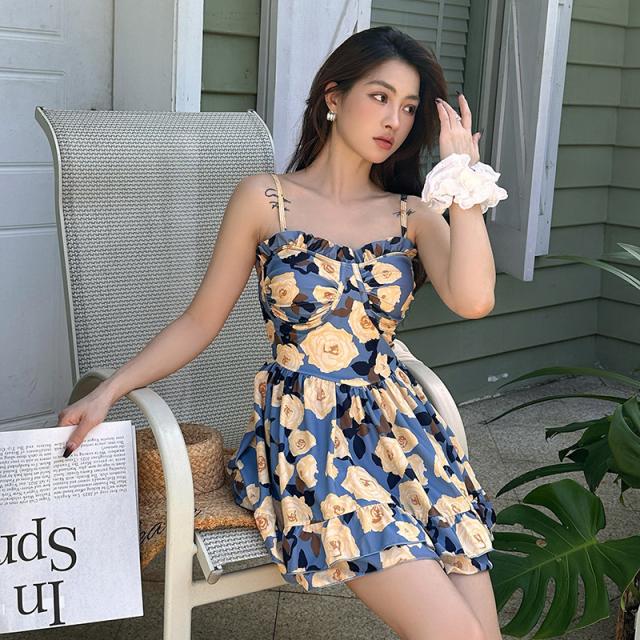 華やかなバラの花柄が散りばめられた大人っぽいワンピース水着。