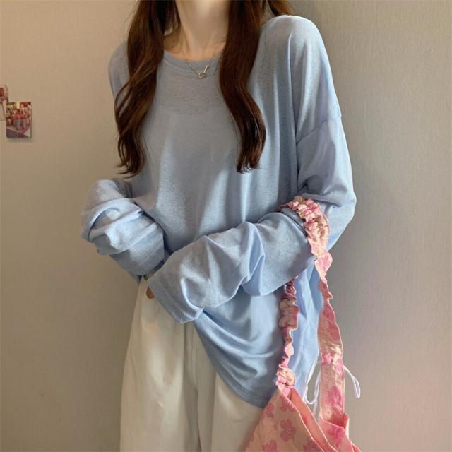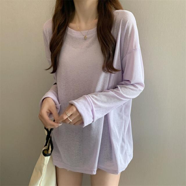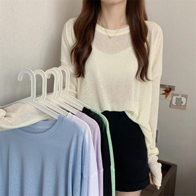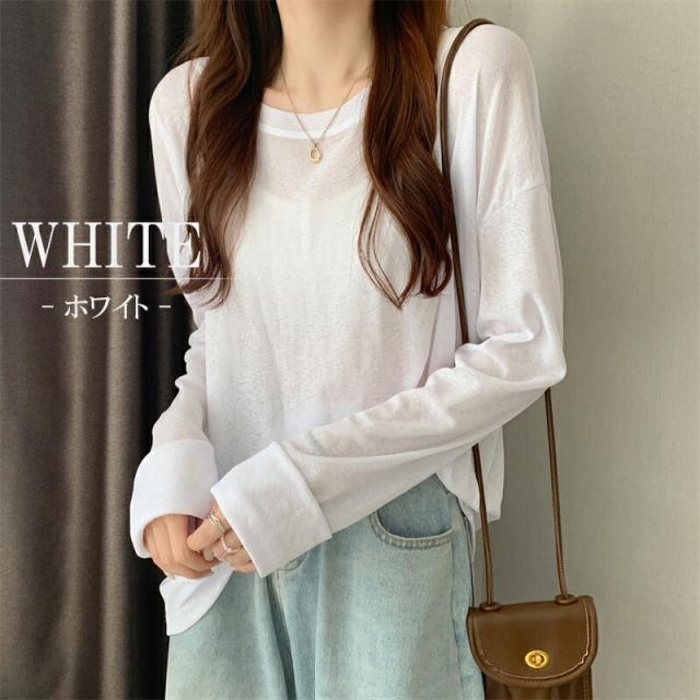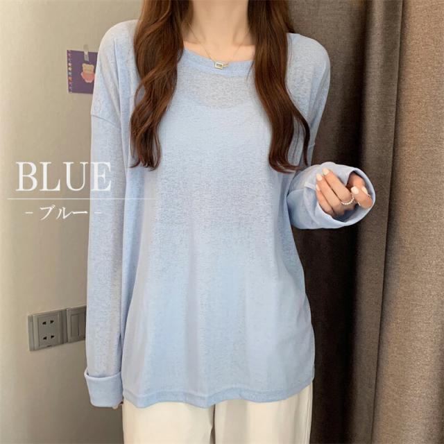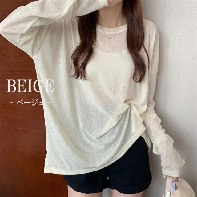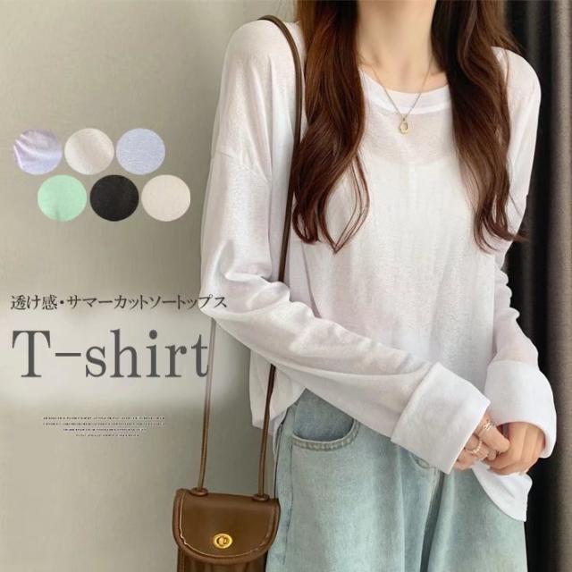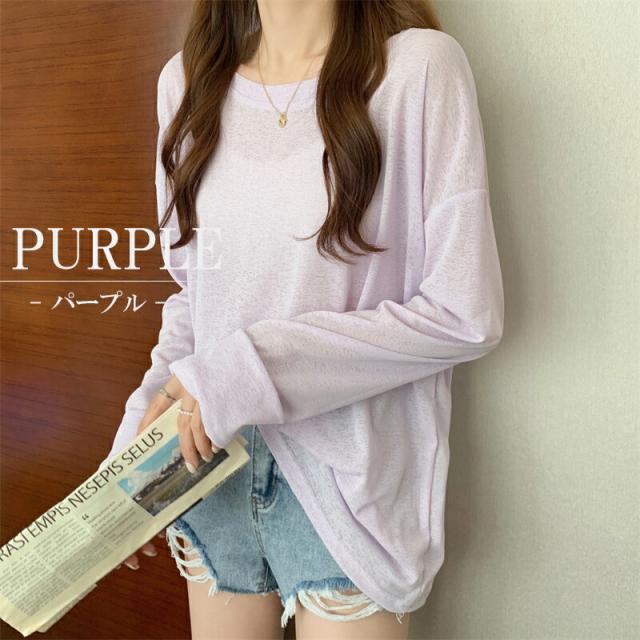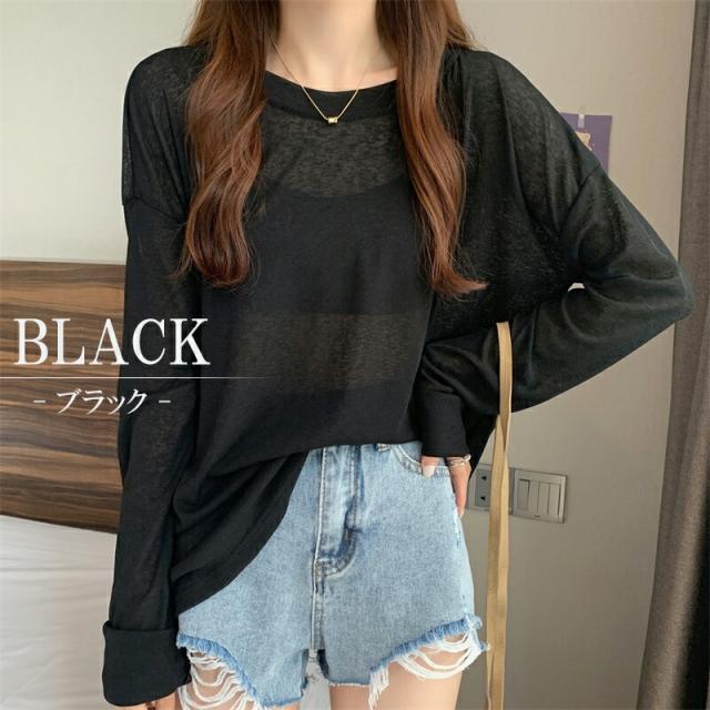 大人のフェミニンを演出 選べる6色シアートップス 透けニット ゆったりニット ニット 透かし編み カットソー 春 夏 秋 トップス 長袖 シアー 日焼け防止 UV対策 透け感 レイヤード