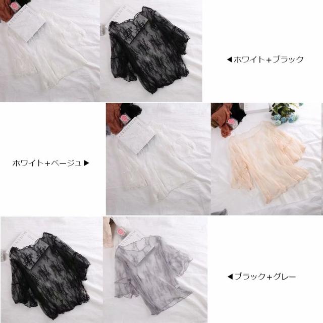 女性らしくセクシー ブラウス 2枚セットトップス 5分袖 透け感 シースルー レイヤード 重ね着 フェミニン インナー