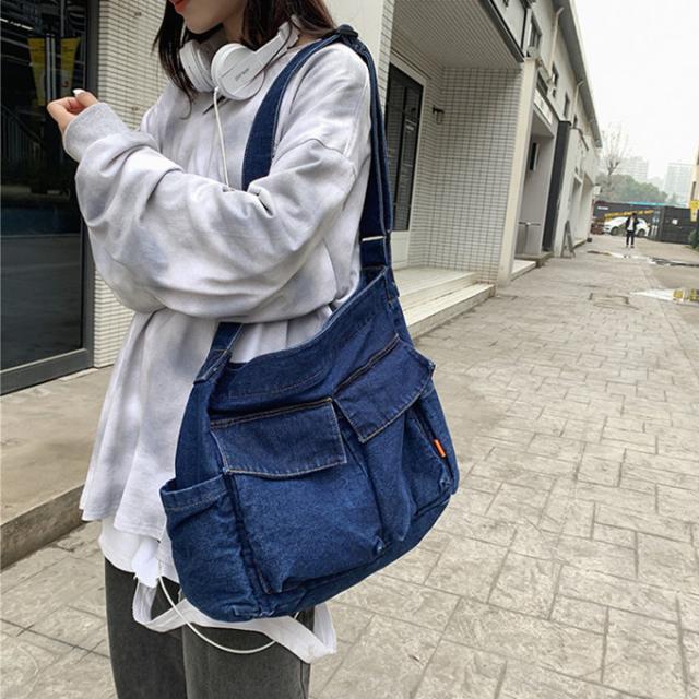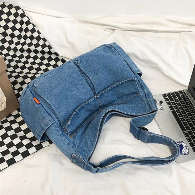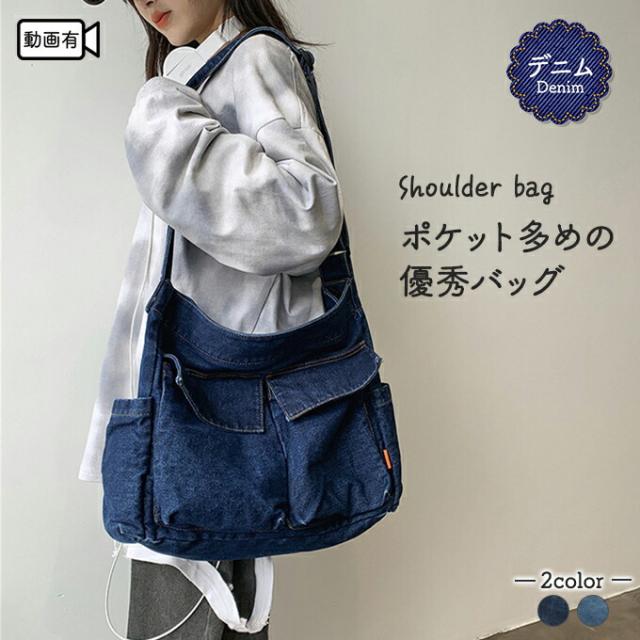 デニム バッグ ショルダーポケット多い バッグ 男女兼用バッグ トートバッグ 豊富 インディゴブルー ライトインディゴ