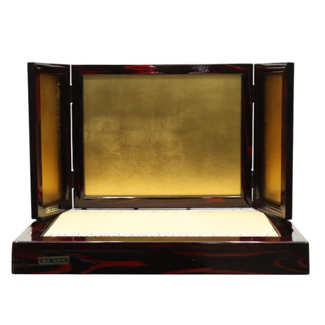 赤塗枠金箔三曲屏風