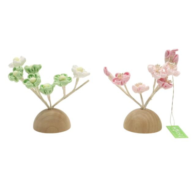 夕彩 ちりめんつまみ細工桜橘 白木半球花台