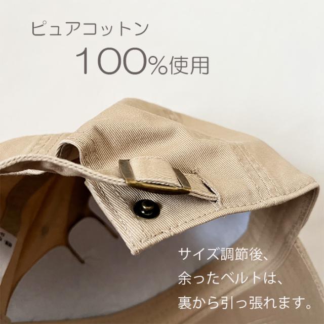 後ろアジャスターでサイズ調節が可能です。 素材:COTTON 100%