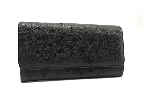 ■極上■本物■美品■ オーストリッチ 二つ折り 長財布 ウォレット 札入れ 小銭入れ カード入れ レディース ブラック系 DH7244